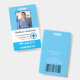 Personalize these vertical medical personnel badges with an employee photo and name, along with multiple custom text fields for hospital or healthcare facility name, unit or floor, title abbreviation, employee ID number, or valid through date, along with the medical centre logo. The title or role appears along the bottom in bold white lettering for easy identification. Customize with a barcode on the back if needed, along with return information or other details.