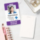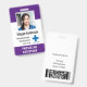 Personalize these vertical medical personnel badges with an employee photo and name, along with multiple custom text fields for hospital or healthcare facility name, unit or floor, title abbreviation, employee ID number, or valid through date, along with the medical centre logo. The title or role appears along the bottom in bold white lettering for easy identification. Customize with a barcode on the back if needed, along with return information or other details.