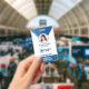 This modern ID Badge features a beautiful blue mesh, photo, logo and bar code.