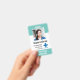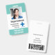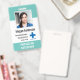 Personalize these vertical medical personnel badges with an employee photo and name, along with multiple custom text fields for hospital or healthcare facility name, unit or floor, title abbreviation, employee ID number, or valid through date, along with the medical centre logo. The title or role appears along the bottom in bold white lettering for easy identification. Customize with a barcode on the back if needed, along with return information or other details.