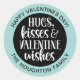 A cute seafoam blue/green Valentines Day Sticker with the words, hugs, kisses & valentine wishes. Personalized it with your name for your Valentine's Day gifts and Treats. Designed for you by Blackberry Boulevard.