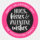 A cute hot pink Valentines Day Sticker with the words, hugs, kisses & valentine wishes. Personalized it with your name for your Valentine's Day gifts and Treats. Designed for you by Blackberry Boulevard.