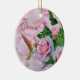 Personalized Hummingbird Pink Roses and Petals Ceramic Ornament