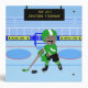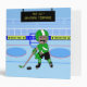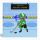 Super cute hockey design for the budding Ice hockey star in your family. Features a young hockey player in gREEN white and black uniform on a hockey arena. The scoreboard is customizable with your own text and name