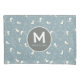 Illustrated blue grey ice skate and snowflake pattern with an inset to personalize with your name and initial.