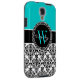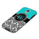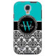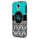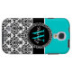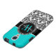 Personalized Initial Aqua Teal Black Damask Case-Mate Samsung Galaxy Case