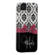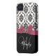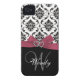 Personalized Initial, Pink, Black Damask Case
