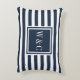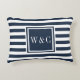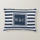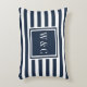 Chic personalized navy blue and white striped accent pillow featuring a navy and white bold square initials monogram. Ideal gift for a wedding or a housewarming gift. You can personalize the initials and customize the colour to a colour of your choice. Designed by Thisisnotme©