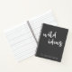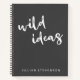 Let your creativity flow with this personalized "Wild Ideas" notebook, featuring bold handwritten typography on a sleek black background. Designed for dreamers, writers, and creatives, this custom spiral notebook is perfect for jotting down thoughts, sketches, or big plans. Add your name for a unique touch and keep all your brilliant ideas in one stylish place.