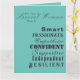 The design is a minimalist, expressive typography one that features certain qualities of great women, including Independent, Smart, Supportive, Confident, Empathetic, Resilient, and Passionate. The three header fields which currently read "for a special woman who is" as well as the message on the inside of the card which read "thank you for all you do" are customizable should you wish to personalize the message for that special woman in your life. For special requests or questions, contact the artist at wafadahdalcreates@gmail.com. © Wafa Y. Dahdal - All Rights Reserved. WD Art