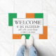 Personalized IRISH FLAG Welcome Doormat with CUSTOMIZABLE TEXT. Stylish, patriotic WELCOME Doormat with the wording WELCOME & BE BLESSED ALL WHO ENTER HERE plus placeholder name. The background is the flag of THE REPUBLIC OF IRELAND in a tiled pattern. All text is CUSTOMIZABLE so you can amend the wording to suit your needs, eg. add family name, family motto, inspirational quote. An ideal gift for St Patrick's Day celebrations and family get-togethers.