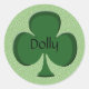 Fun round personalized green Irish shamrock stickers, perfect for St. Patrick's Day, for an Irish lad or lass, or for an Irish wedding. Shown is the fully editable and customizable name, Dolly. (Name can be removed, too.) Designed by 369MyName.