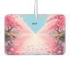 This image shows a rectangular air freshener with rounded corners, hanging from a white string. The design features a beautiful, dreamlike illustration of a river flanked by cherry blossom trees in full bloom, with pink petals floating on the water. The name "Jade" is printed in the center of the design in a simple, dark font. The overall color palette is dominated by soft pinks, blues, and whites, creating a serene and spring-like atmosphere.