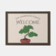 This personalized doormat or welcome mat is perfect for bonsai tree gardeners. The tan and brown coloured mat features a simple painted style illustration of a potted bonsai tree in shades of green, brown and red. It’s perfect for those looking for a calm and peaceful style with a clean, minimalist sort of look.
