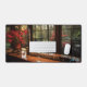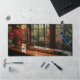 Bring the serenity of this Japanese themed workbench into your workspace with this exquisite desk mat. Personalize it with a name printed on the lower right corner. This mat features a view of a Japanese workbench with a view of a lush green garden with a high-quality print from a high definition graphic. It provides a smooth and comfortable surface for your work for your laptop, keyboard and mouse. It can also transform your workbench with a stylish and elegant touch. Perfectly suited for all creators, artists, writers and anyone inspired.