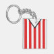 Easy to edit soccer / football / sports jersey keychain, just use the boxes to the right of the image to insert your own choice of name and number on the back. The design of this jersey has red stripes, with black v-neck trim. The background colour can be edited, just click on CUSTOMIZE.