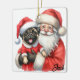 Personalized Joyful Pug Dog with Santa Ceramic Ornament