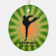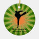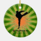 Karate Personalized Ornament Christmas 20XX. Karate pose against a green and orange starburst background.  All text customizable, front and back!