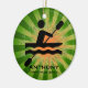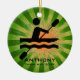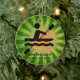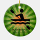 Kayaking Personalized Ornament Christmas 20XX. A kayaker in motion against a green/orange starburst background. All text customizable, front and back!