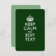 A personalized racy forest green Keep Calm and Carry On style saying on a custom gift. Humourous or whimsical try on your creative words on the two editable lines of text. Remember to use CAPITAL letters for best results.