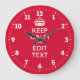 Personalized Keep Calm And Have Your Text on Red Large Clock