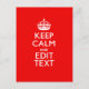 Personalized Keep Calm And Have Your Text on Red Postcard