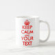 Personalized Keep calm and your text coffee mugs. Create your own funny Keepcalm parody drinking cup. Vintage red typography template with crown. Customize it with your text. Keep calm and drink coffee. Keep calm and drink tea. Make your own double sided design. Cute humour gift idea for fathers day, mothers day, birthday, office employee, boss, teacher, mom and dad etc. Change the quantity to get the cheapest price per mug. Also available as big extra large and travel version.