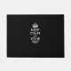 A personalized Keep Calm and Carry On saying. Humourous or whimsical try on your creative words on two editable lines of text. Remember to use CAPITAL letters for best results. A custom floor mat sure to make an impression on or off the floor.