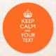 Personalized KEEP CALM AND Your Text for Orange Round Paper Coaster