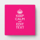 Personalized KEEP CALM AND Your Text on Fuchsia Plaque