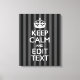 Personalized KEEP CALM AND Your Text on Stripes Canvas Print