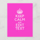 Personalized KEEP CALM AND Your Text Vibrant Pink Postcard