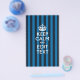 A personalized trendy blue stripes decor Keep Calm and Carry On style saying on a custom gift. Humourous or whimsical try on your creative words on the two editable lines of text. Remember to use CAPITAL letters for best results.