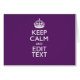 A personalized purple accent Keep Calm and Carry On style saying on a custom gift. Humorous or whimsical try on your creative words on the two editable lines of text. Remember to use CAPITAL letters for best results.