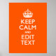A personalized orange accent Keep Calm and Carry On style saying on a custom gift. Humourous or whimsical try on your creative words on the two editable lines of text. Remember to use CAPITAL letters for best results.