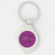 Custom keychain with your initial and name, and with any colour background, colour font or font type. Just choose the personalize, then customize option. Designed by HAMbyWhiteGlove, fulfilled by Zazzle. Shown on a tear drop shaped silver keychain with a plum purple background, black initial and white name text.