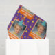 Wrap your gifts in a festive custom purple tissue paper that features a fun display of orange and yellow stars and circles. Personalize this bright design with a photo of your little birthday boy or girl, complete with a cheerful blue birthday hat.