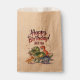 This personalized cute green dinosaur happy birthday favour bag design shows adorable watercolor dinosaurs of various colours. This design also shows festive confetti as well as the phrase "happy birthday". Personalize with your name. The main colour scheme is greens, reds, and blues. Enjoy this fun kids birthday party favour bag design!