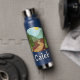 The water bottle features a fun and colourful illustration of a winding hiking trail, complete with trees, and a bright blue sky. Personalize it with your child's name, and they'll be ready to hit the trails in style!