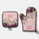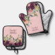 Personalized Kitchen Burgundy Pink Floral Oven Mitt & Pot Holder Set
