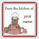 Cute teddy bear in an apron on personalized kitchen stickers. From the kitchen of - your name.