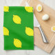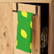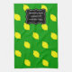 Personalized kitchen towel with yellow lemons pattern. Cute gift idea for home or business. Customizable background colour and text. Healthy fruity food / diet theme. Famous quote: When life gives you lemons make lemonade.