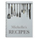 Personalized kitchen utensils recipe notebook. Add your own name.