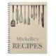 Personalized kitchen utensils recipe notebook. Add your own name.