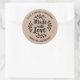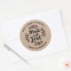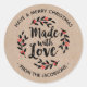 A personalized "made with love" sticker on a kraft coloured background. Features a pretty berry wreath and the words "made with love" in an elegant script font. A pretty finishing touch for all of your handmade gifts. Designed for you by Blackberry Boulevard.