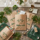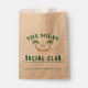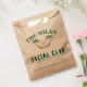 Celebrate your special day with a unique, personalized touch! These charming kraft paper wedding favor bags from 'The Milan Social Club' are the perfect addition to your destination wedding, engagement party, or tropical-themed event. The design features arched green serif text at the top and brush script text below, all set on a natural, eco-friendly brown paper background. A custom illustration of two palm trees with a heart made of festive lights forms a delightful arch. Use these bags for small treats, favors, cookies, or confetti. All text fields are customizable templates, including 'The Milan Social Club' name, the EST date, and the names of the couple. Simply click the 'Personalize' button to add your own details and make them truly your own!