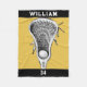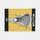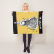 Lacrosse player or coach blanket featuring stick-and-ball design on gold and black background. To personalize edit text to add lax player's name and team number #.
