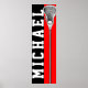 Lacrosse poster for player or senior night decoration featuring lax stick design on a red background. Edit text to add player's name.
