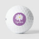 Personalized lady golf balls with daisy flower. Customizable template with custom name or quote. Fun gift idea for golfers and golfing fans. Cute Birthday gift idea mom, wife, friends, team, group, teacher, instructor, bride, bridesmaids, caddie, sister, daughter, kids etc. Pink or custom background colour.
