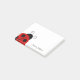 This is Personalized Ladybug notepad. This post it notes featuring is a white background with large red and black ladybug peeking in from the bottom left side. You can customize with a name or message. It is fun office supplies for work or home.